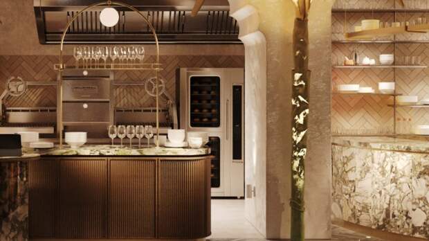 Эта нежная история легла даже в основу архитектурной концепции. Испанские и французские мотивы обретают особую силу в интерьере шеф-бистро, атмосфера пронизана умиротворением, радостью и праздником.