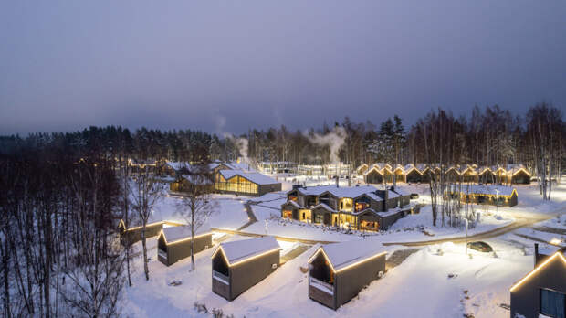 Курорт рассчитан на более чем 300 гостей: 43 виллы и 20 отельных номеров — от семейных пространств на несколько спален до камерных мини-вилл с камином или собственной сауной. Каждая — с тем самым скандинавским ощущением приватности, когда даже открывая панорамные окна, ты всё ещё будто один на природе.