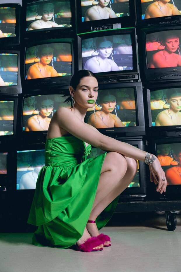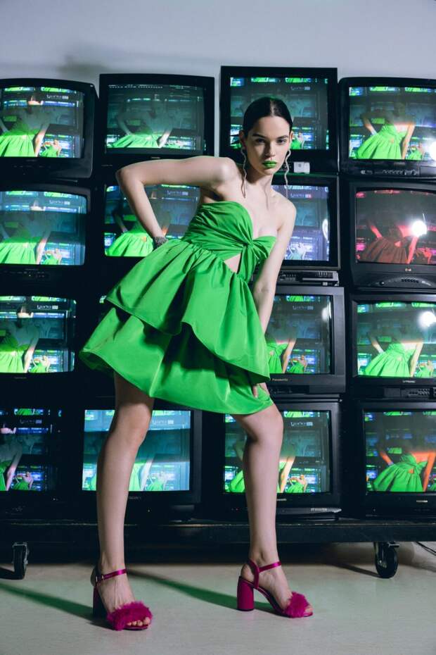 Еще два явных statement pieces: платье в оттенке very peri (главный цвет 2022 года по версии Pantone) и сочной зелени, за ними точно будут охотиться!
