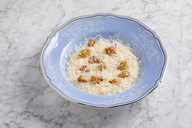 Пшеничная каша с топинамбуром, пармезаном и выдержанным адыгейским сыром с кремовой текстурой и уютом — идеальна для завтраков, которых в «Перемене» пока нет, но как гарнир спорна, слишком доминирует во вкусах.