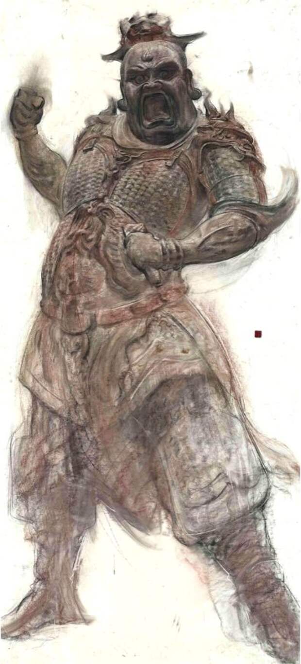 Часто художники обращаются к экспрессивным образам, имеющим гневный характер. Для российского зрителя, привыкшего видеть в таких персонажах воплощение зла, это может быть непривычно: в китайской традиции эти образы несут защитную функцию, являя собой активное сострадание — действие, способное уберечь от невежества и отгонять злые силы. Среди экспонируемых работ — редкие интерпретации исторических скульптур и живописных образов из монастырей Дуньхуана, Шуанлиньсы, Лунсинсы, Юйхуанмяо и др. Культурный код трансформирует исторические символы в осмысленные знаки для современного зрителя, раскрывая потенциал их интерпретации и переосмысления в рамках актуальных художественных практик.