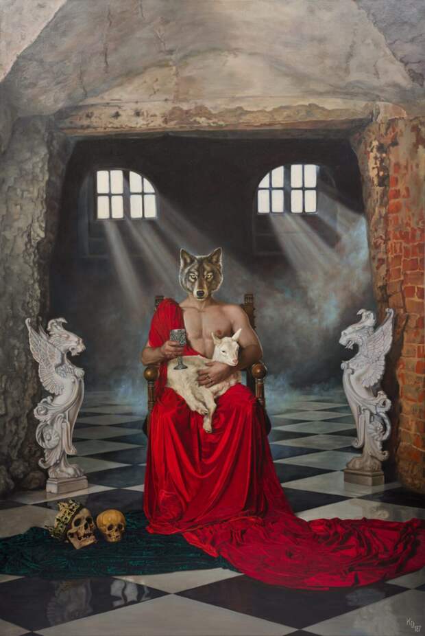 В работах Ксении Долинской реальность сталкивается с мифом, а человек — со своим собственным зверем. Центральный вопрос, который ставит художница: кто жертва, а кто хищник? Эти роли в произведениях Долинской постоянно меняются местами, создавая сложную игру отражений.