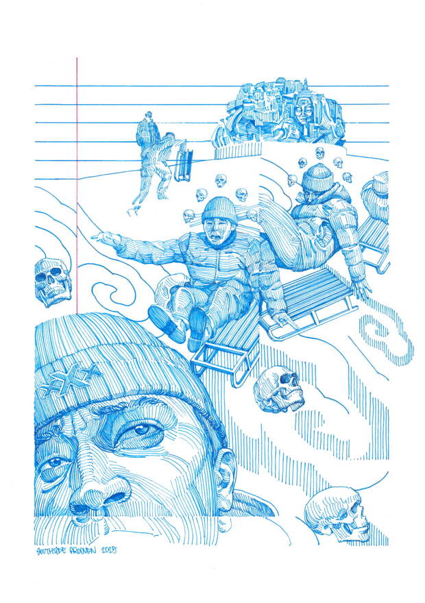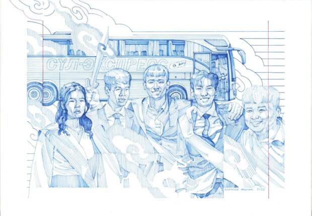Графическая серия — это в определенном смысле отражение жизни в Калмыкии в 1990-х и 2000-х годах, на которые пришлось детство автора. В этих работах художник исследует свои непростые отношения с калмыцким языком — вопрос, актуальный для многих представителей его поколения.