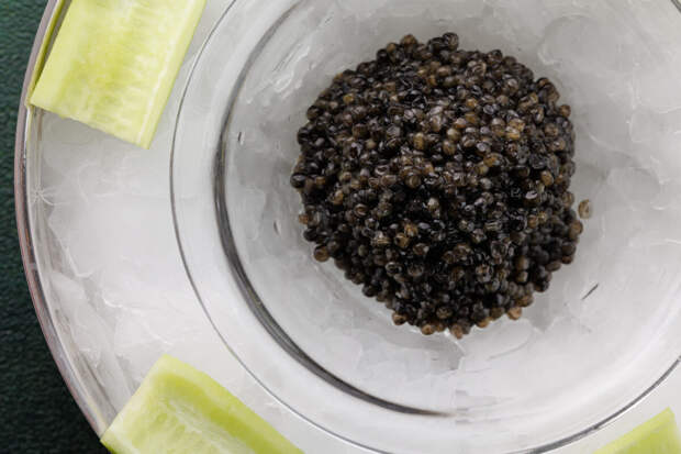 Шеф предлагает гостям совершить путешествие по четырем ступеням икорного декаданса — от легкой закуски до насыщенного пасты. Закуска Огурцы с черной икрой, в которой 50 грамм “черного золота”, подается за 3200 руб — хрустящий охлажденный огурец и икра осетра — минималистичный дуэт, где главные роли отданы чистоте вкуса.