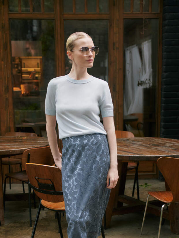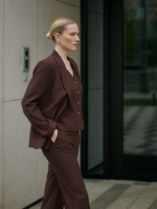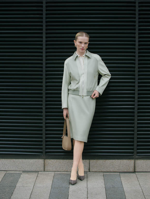 Коллекция предлагает настоящую капсулу гардероба, где для каждого момента найдётся своя идеальная вещь: от платьев (лаконичные футляры, модели с драпировкой и воздушные варианты с верхней юбкой) и брюк (от утончённых зауженных до выразительных палаццо) до жакетов, среди которых выделяются укороченные модели, вариации на тему «косухи» и эффектные изделия с пайетками.
