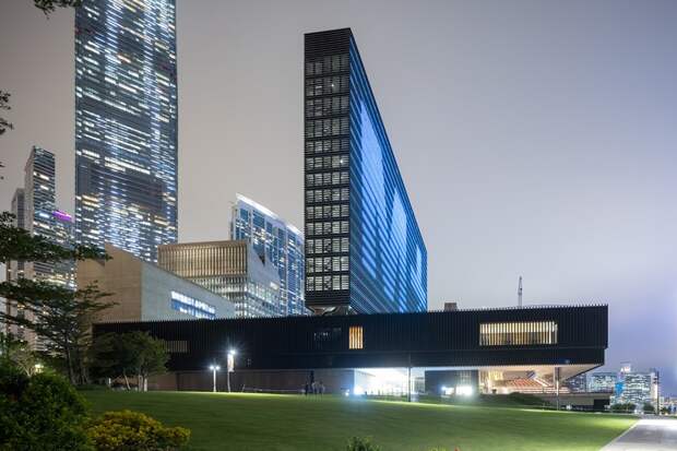 M+ – крупнейший в Азии музей визуальной культуры ХХ – ХХI веков и один из самых значимых музеев мира. Его здание, спроектированное швейцарским архитектурным бюро Herzog & de Meuron в партнерстве с TFP Farrells и Arup, выглядит как огромная перевернутая буква «Т», вырастающая прямо у воды в районе Западного Коулуна.