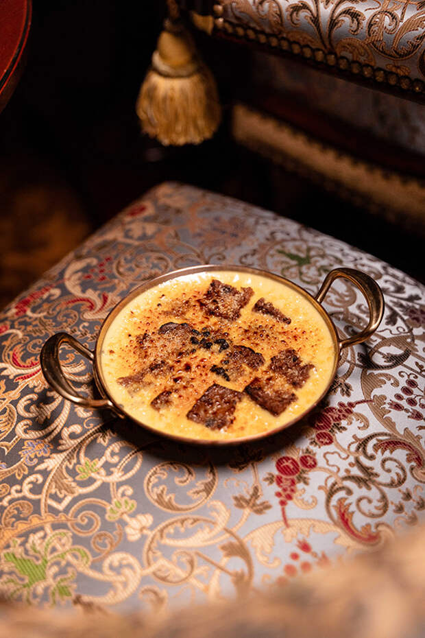 - Флан из шоколада Caraïbe от Valrhona с тонкими нюансами какао одного происхождения, раскрывающий все богатство вкуса.