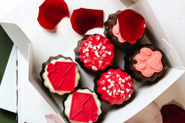 Та самая коробка канеле-валентинок трех вкусов, которыми можно признаться в любви не только второй половинке, но и просто важным людям в вашей жизни, в том числе и себе: