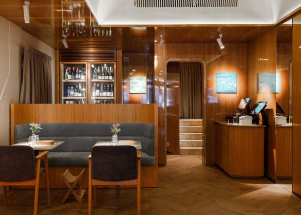 Пространство гармонично объединяет мягкие изгибы стен и мебели, серо-голубые оттенки обивки и, главное, — аппетитные ароматы: от десертной витрины до печи с домашним хлебом и фирменными пицеттами. Здесь каждый найдет что-то по душе, а каждое посещение удивляет новыми гранями.