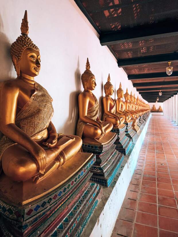 Главный магнит — храмовый комплекс Ват Махатхат с легендарной головой Будды, оплетённой корнями баньяна. Чуть поодаль — монументальный Ват Пхра Си Санпхет, некогда королевский храм, чьи три ступы, словно фарфоровые колокола, выстраиваются в идеальную перспективу на фоне неба.