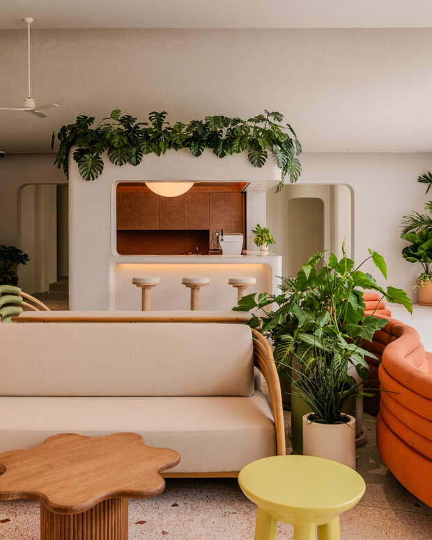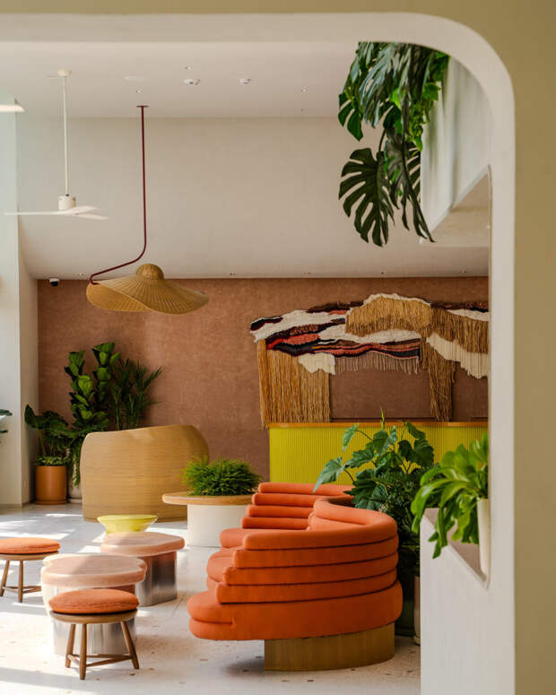 Ландшафтный дизайн от студии PLA вплетает буйную зелень в каждый уголок отеля, приглашая гостей в мультисенсорное путешествие от момента прибытия до выхода к морю. Здесь свет, тень, текстуры и звуки раскрываются в погруженных в природу и постоянно меняющих свой вид в зависимости от времени суток пространствах.