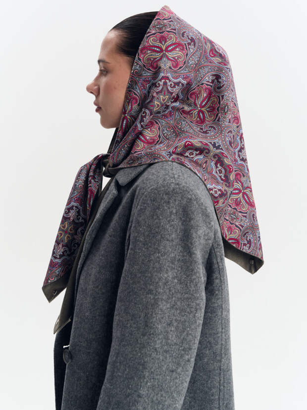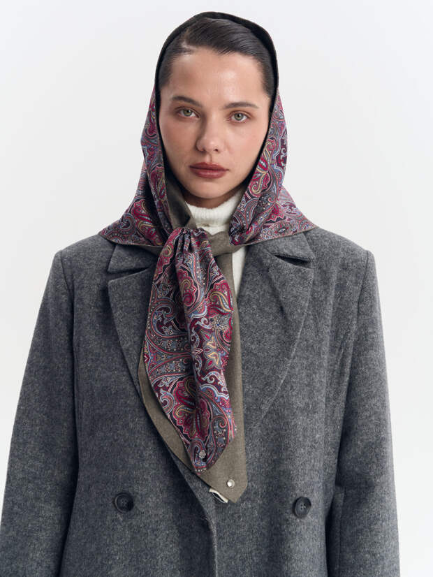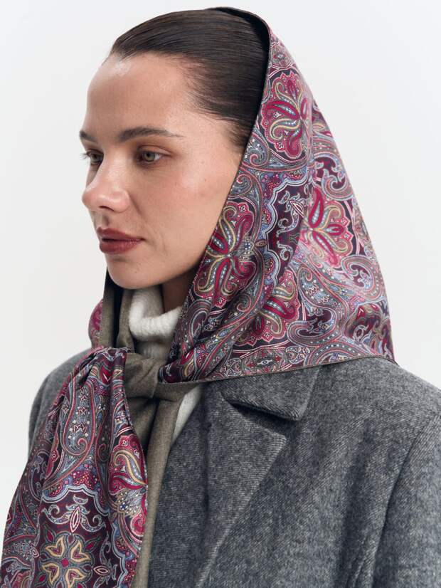 Узор «огурец», любимый многими дизайнерами, здесь представлен в свежей цветовой гамме, что делает его актуальным для современной модницы, ценящей наследие и историю.Двусторонние косынки из тонкой 100% шерсти и натурального шёлка с принтом не только согревают в холодное время, но и выглядят по-настоящему дорого. Аксессуар можно носить не только на голове, но и на плечах или повязать на бёдра, создавая новые образы. Косынка легко сочетается с пальто, плащом и курткой. Особенно элегантно смотрится с шубой.
