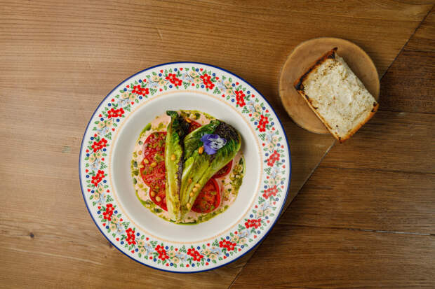- Сладкие помидоры с обжаренным на гриле романо и кедровыми орехами — 860 руб.