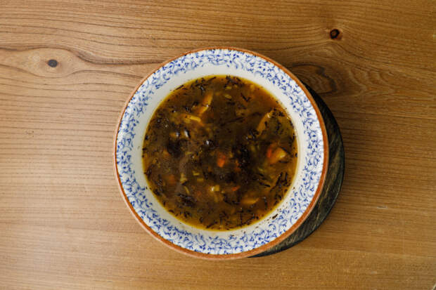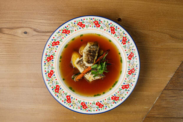 - Грибной суп с черемшой и свежим трюфелем — 1360 •Овощной суп с ледяной рыбой — 1260 руб.