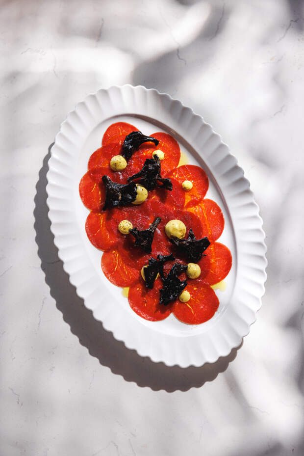 Шеф, знакомый публике по работе с ресторанами Rodina, Avrora и Wine & Crab делает ставку на работу с тремя видами печей: хоспером, дровяной и аргентинским грилем.