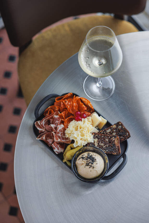В винотеке – топовые образцы Бургундии, Супертосканы, Бордо и Шампани, а в барной карте – нетривиальные сочетания коктейльных миксов.