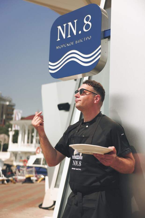 На углу причала номер восемь Морского порта Сочи и улицы Несебрской «пришвартовался» новый проект Дениса Крупени. За высокими панорамными окнами виднеется интерьер в корабельном стиле со стеновыми панелями из дерева, окнами-иллюминаторами и столами в духе круизных лайнеров.