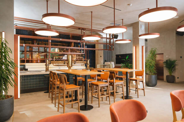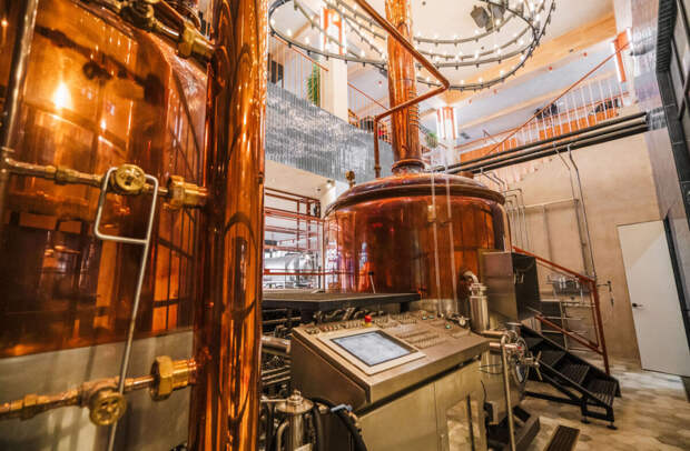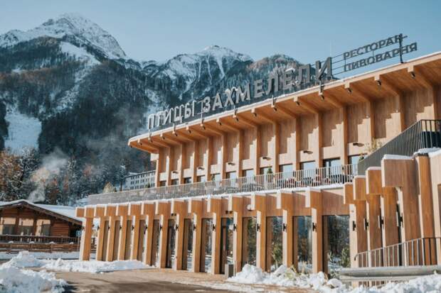 Массивное здание в стиле хай-тек у курорта «Горки город» поражает размахом: снаружи – терраса с видом на горы, внутри – триста посадочных мест и пивоваренный цех с металлическими танками. Через стеклянные стены видно, как варят пенный напиток четырех сортов: ипа «Капитан Воробей», портер «Бравый ворон», пшеничное «Шальная московка» и лагер «Хмельной дрозд». Их продают с собой в местном магазине и предлагают в дегустационном формате ресторана.