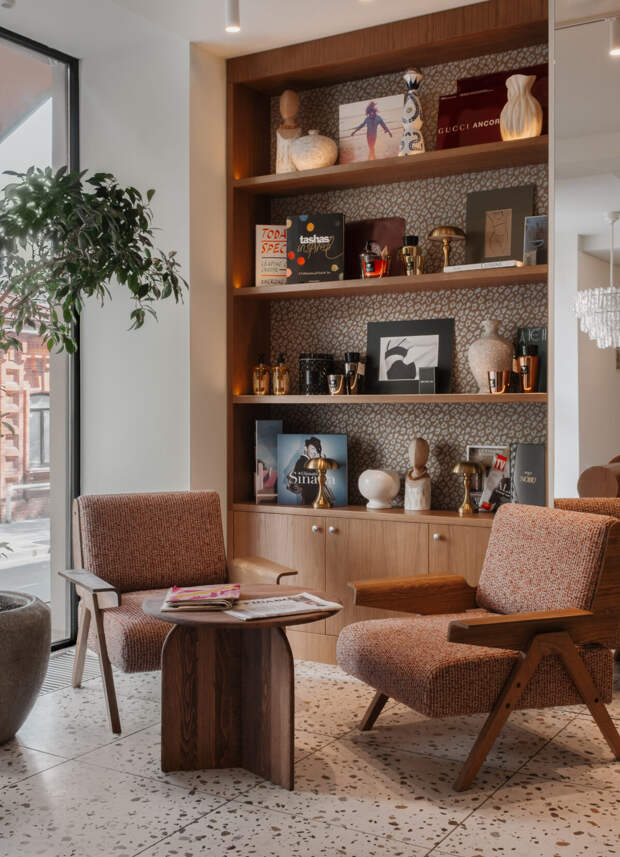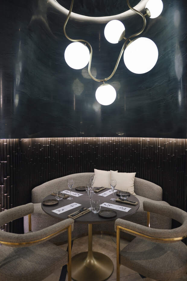 Локация продолжает концепцию отеля, посвященную птицам: среда обитания пернатых читается в глубоких зеленых тонах мрамора с деталями из бамбука и травертина, как символ тропического леса и бар, украшенный узорами кракле на глазурованной керамике – в точности как рисунок на скорлупе птичьих яиц.