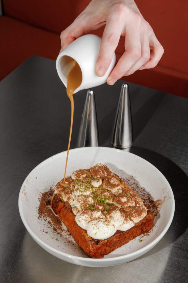 Утро в Svet cafe может начаться в любое время. Из новых позиций для плотного старта дня Дарья предлагает хрустящие тосты: с форелью, авокадо и эстрагоновым баваруа (710 руб.) и с пастрами, яйцом пашот и зернистым соусом (680 руб.). Для поклонников яичных завтраков рекомендует испанскую яичницу с томатами (550 руб.), скрэмбл со средиземноморской креветкой (720 руб.) и драник с ореховым айоли и форелью (690 руб.). Для утреннего сладкого удовольствия – тост «Тирамису» с солёной карамелью и лаймом (480 руб.) и воздушные сырники с малиновой крошкой и сметаной (590 руб.).