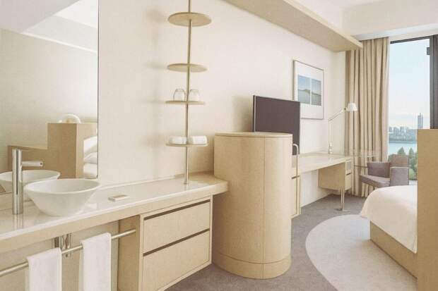 До туалета — два метра. Слава архитектору, что туда хотя бы приручили дверцу. Видимо, именно она и является символом приватности в концепции Hyatt Regency Екатеринбург.