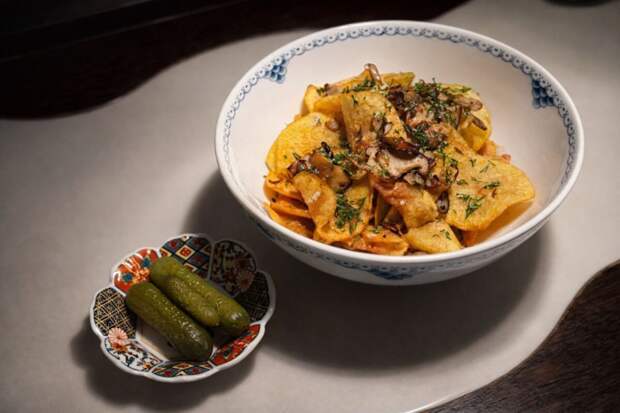 Про европейскую душу в концепции ресторана тоже не забыли: за неё отвечает самое уютное и согревающее постное блюдо со вкусом из детства – картофельные слайсы с жареными грибами и солёными корнишонами.