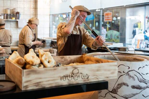 Выпечка — 17 видов хачапури. Классические имеретинские и мегрельские соседствуют с авторскими идеями. Последний хит — хачапури с лисичками, созданный в коллаборации с петербургским шефом Мариной Наумовой («Миндаль»).