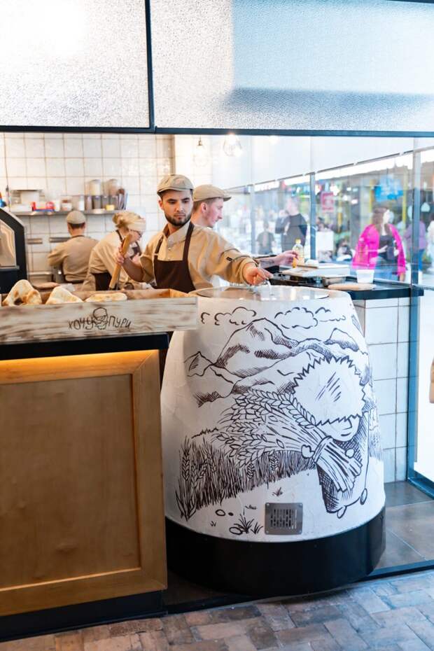 Печь тонэ — сердце ресторана. В ней рождается пури, горячий грузинский хлеб, который каждому гостю подают с авторскими соусами. Это не просто комплимент, а настоящий гастрономический символ философии «Хочу Пури».