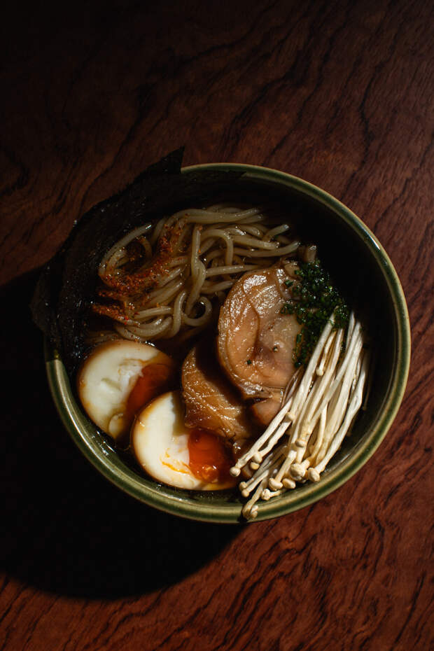 В разделе с основными блюдами можно найти маринованный в кодзи бавет со спаржей (2400 р.), гедза с сочной начинкой из креветки (900 р.), цыпленка терияке (950 р.), а также два варианта удона: с нежным цыпленком (900 р.) или с морепродуктами (1100 р.): креветками, кальмарами и осьминогом в соусе тонкацу,