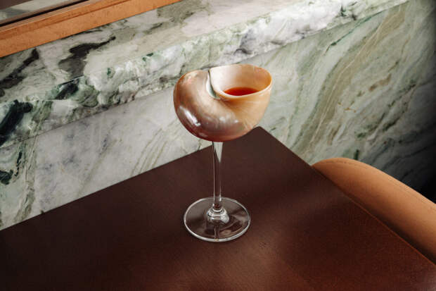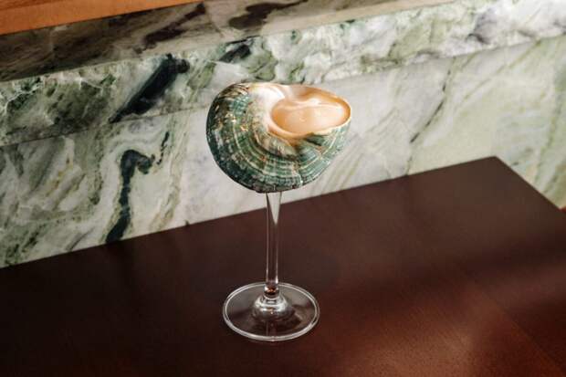 Коктейли подают в бокалах-ракушках, символизирующих дыхание Азии — лёгкое, чувственное и созерцательное.