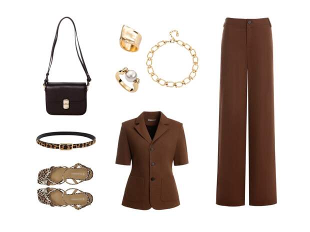 Монохром в коричневых тонах — беспроигрышный вариант для выхода в свет. Дуэт из приталенного жакета и классических брюк сам по себе является воплощением элегантности, а благородный коричневый цвет подчёркивает его статусность.