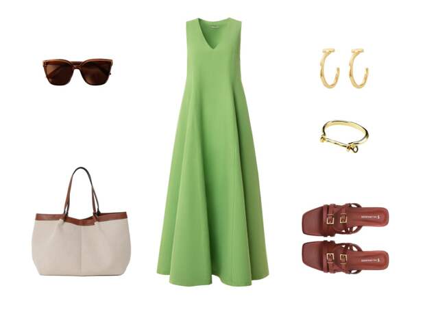 Минималистичные серебристые украшения подчеркнут лёгкость и воздушность образа, а открытая обувь добавит нотку непринуждённой элегантности.