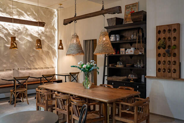 Интерьер «Фромажери» Андрей собирал буквально своими руками: антикварные предметы, найденные на рынках юга Франции, соседствуют здесь с ароматом свежей выпечки и кофе собственной обжарки, создавая ощущение теплого обжитого дома где-нибудь в Провансе.