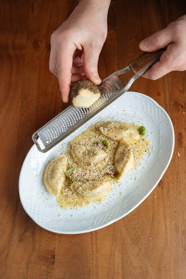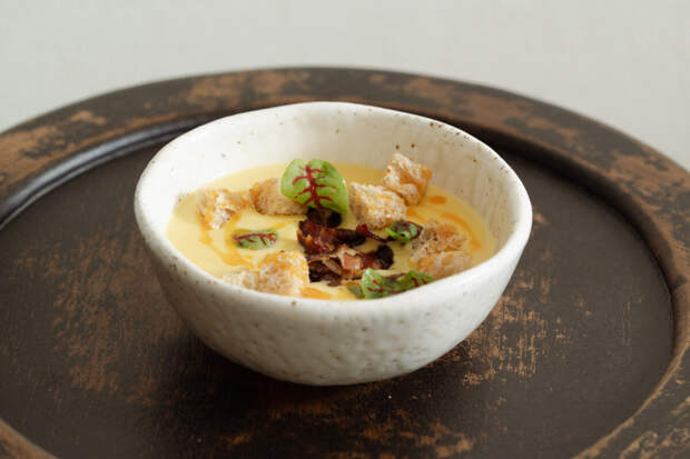 Гастрономическая концепция построена на понятных европейских блюдах, в которые тонко вплетены локальные фермерские продукты. Вместо классической винной карты в бистро сделали ставку на сидр, собрав коллекцию от российских до норманнских производителей. В меню — сырники из топленого творога с фермерской сметаной, омлет с мортаделлой и качоттой, домашние колбаски с раклетом и вареники в соусе качо-э-пепе.