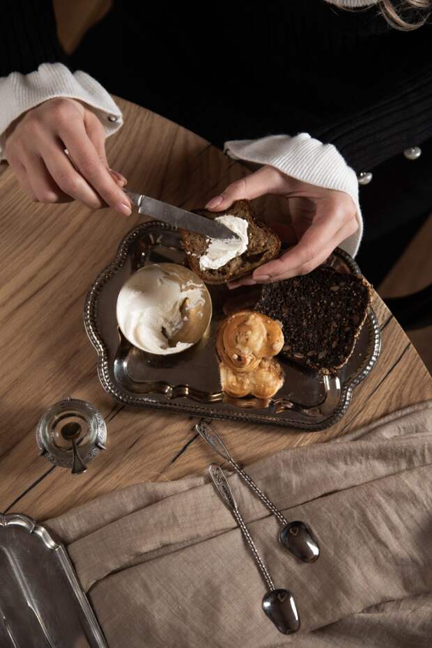 Совместно с декоратором Анастасией Дубровской в ресторане собрали коллекцию предметов сервировки с историей. Анастасия лично отбирала разные вещицы на блошином рынке на Уделке.