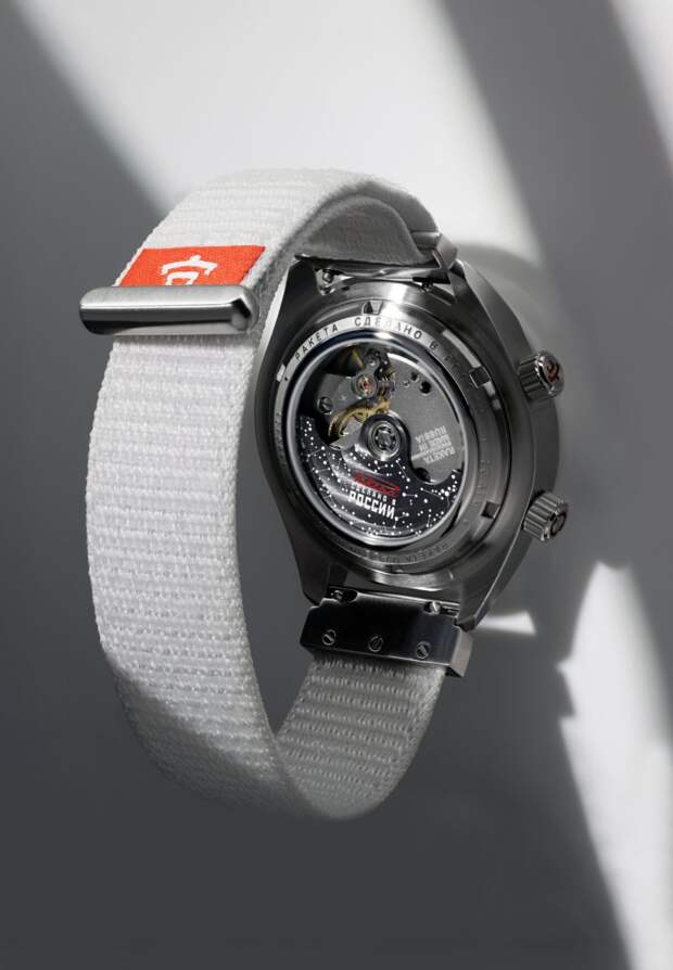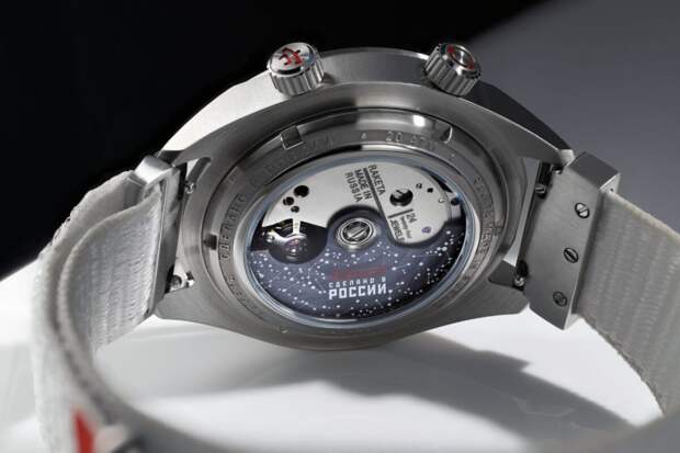 Через открытую заднюю крышку открывается вид на мануфактурный механизм «Ракета» , ротор которого декорирован изображением созвездий.Стоимость часов составляет 220 000 руб в официальных бутиках «Ракета» в Москве, Санкт-Петербурге, а также в Интернет-магазине с бесплатной доставкой.