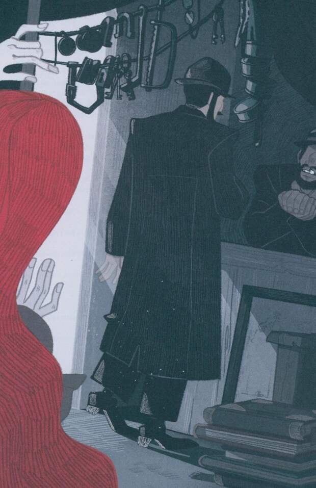 Соня Ланкина — иллюстратор, работающий с книжными и анимационными проектами. Специализируется на визуальной стилизации и создании образов и персонажей. «Я вдохновлялась не столько конкретными произведениями или определенным стилем, сколько общей эстетикой начала ХХ века. Я искала баланс между плакатно-театральной композицией, графичным реализмом и современной стилизацией, которая близка лично мне. Конечно, я погружалась в контекст: изучала еврейские символы, архитектуру Праги и элементы ар-деко по старым фотографиям.»
