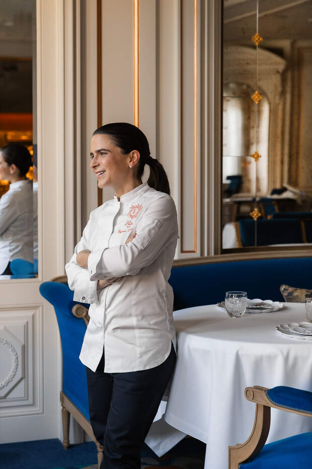 Центральная часть ужина обращается к земле и её ароматам — блюдо из сельдерея, щавеля и садовых трав, вдохновлённое камерунским N’dolé, удивляет насыщенностью и оригинальностью, а изысканное сочетание голубя с топинамбуром, какао и кофейным соусом придаёт композиции глубину и благородство. Финал вечера — два авторских десерта: малина с сорбетом из любистка и карамелизированным тестом, а также лёгкий крем с оливковым маслом Champsoleil и нотами цветков апельсина и венесуэльского шоколада — оставляют после себя долгое, многослойное послевкусие.Гастрономический стиль Эжени Безиа отражает её личность: страстную, креативную, яркую и щедрую. Эжени совершенствовала своё мастерство под руководством признанных метров: Мишеля Геррара (Les Prés d’Eugénie, 3 звезды Michelin), Мишеля Саррана (2 звезды Michelin) и Янна Ле Скаварека, шефа ресторана La Roya* на Корсике. Позже она получила свою первую звезду Michelin в ресторане La Flibuste в Вильнёв-Любе. В марте 2024 года, всего через полгода после открытия, ресторан Espadon в отеле Ritz Paris был отмечен звездой в гиде Michelin 2024.