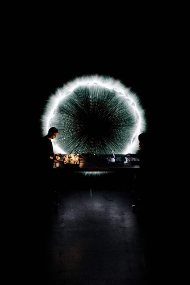 Tonoptik (Россия) представят инсталляцию Reduktor, которая преобразует невидимую энергию Вселенной в линейное движение света. Четыре лазерных модуля сходятся в центральную световую колонну, реагирующую на электромагнитное излучение мобильных устройств, мюоны космических лучей и другие незримые потоки, пронизывающие пространство.