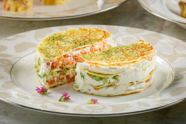 В меню — классические позиции и авторская классика. Сытные — с копченым лососем и сливочным сыром, с нежным рагу из говядины и копченым болгарским перцем, ароматные — с грибами и мускатным орехом. Праздничные — с красной икрой. В унисон с дворцовой эстетикой «Дома со львами» звучат блины креп сюзетт с апельсиновым соусом, ликером куантро и ванильным мороженым. А бесспорным королем блинной коллекции стал многослойный торт из блинов с шоколадным ганашем и вишней.