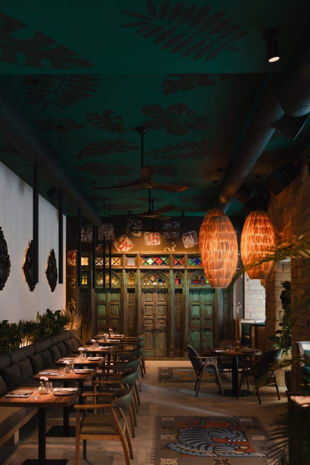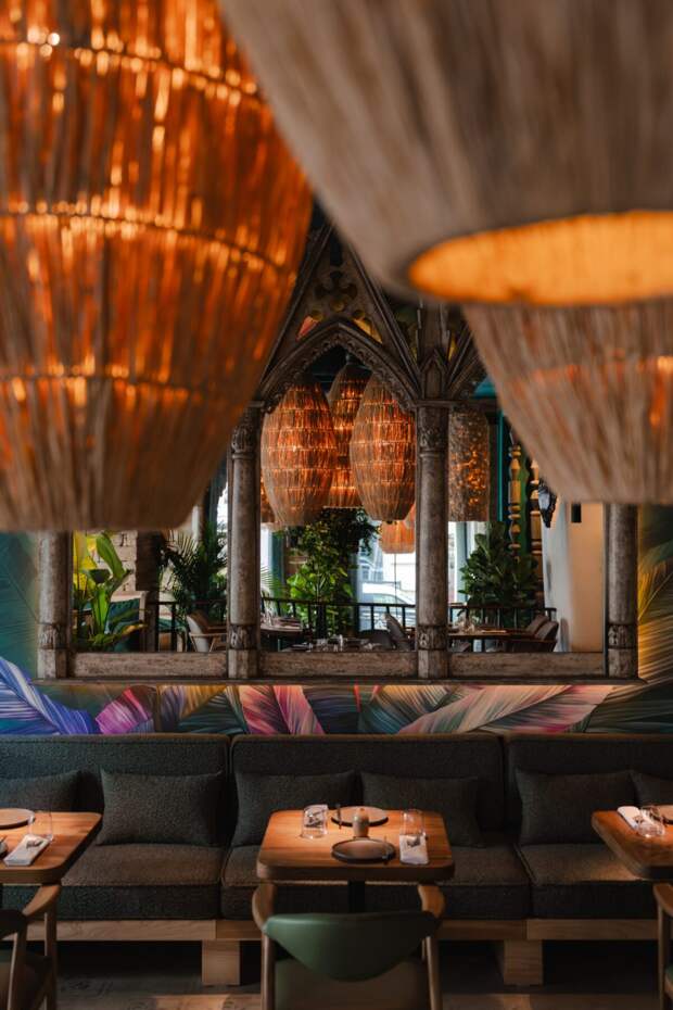 King Pong Baku занимает 250 квадратных метров — пространство, рассчитанное на 77 посадочных мест, где легко задержаться дольше запланированного. Интерьер от архитектурного бюро Игоря Сушкова располагает к неспешным ужинам, разговорам и вечерам, которым не хочется искать продолжение за пределами ресторана. В пространстве соседствуют природные материалы, а переплетение дерева и камня создают ощущение тропических джунглей, аккуратно вписанных в центр Баку. Азиатские мотивы здесь проявляются в акцентах: теплые светильники из бамбука, орнаменты на потолке и найденные по всему миру артефакты. Панорамные окна в пол наполняют зал светом и впускают город внутрь, делая его частью интерьера, а контактная барная стойка становится естественной точкой притяжения — сюда заходят начать вечер или задержаться после ужина. По выходным в ресторане будут звучать DJ-сеты, в будни атмосферу поддерживает спокойный азиатский лаундж.