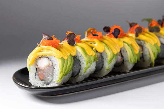 В ролле «Куроко» креветка темпура гармонично сочетается с дорадо и экзотическим соусом манго. В ролле «Хоккайдо» сладость угря балансирует с ореховыми нотками авокадо.Ролл «Окама» включает микс лосося, мяса камчатского краба и тигровой креветки, а ролл «Харумаки» — лосось, креветку и сливочный сыр в японском блинчике. Завершающим блюдом в спешеле является «Тунакко» — с тунцом, авокадо, трюфельным маслом и перепелиным яйцом. И, конечно, не обошлось без экспериментальных блюд — в меню появились сытные суширито с курицей или креветками, дополненные свежим салатом, кукурузой и соусами терияки, спайси и унаги.