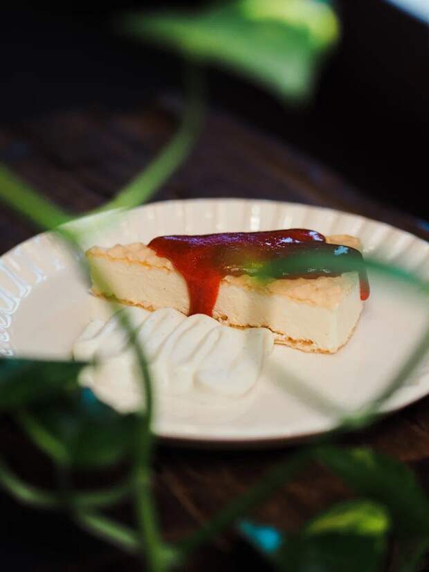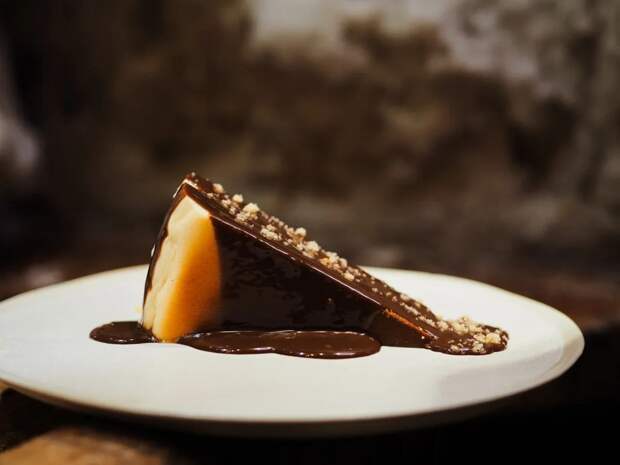 - Баскский чизкейк (850 ₽) — кремовый, с шоколадным соусом и штрейзелем.